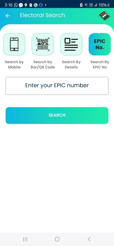 - Search by EPIC NO (Voter ID number)